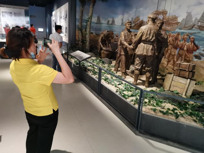 黨員同志們在珍貴的圖片展前合影留念