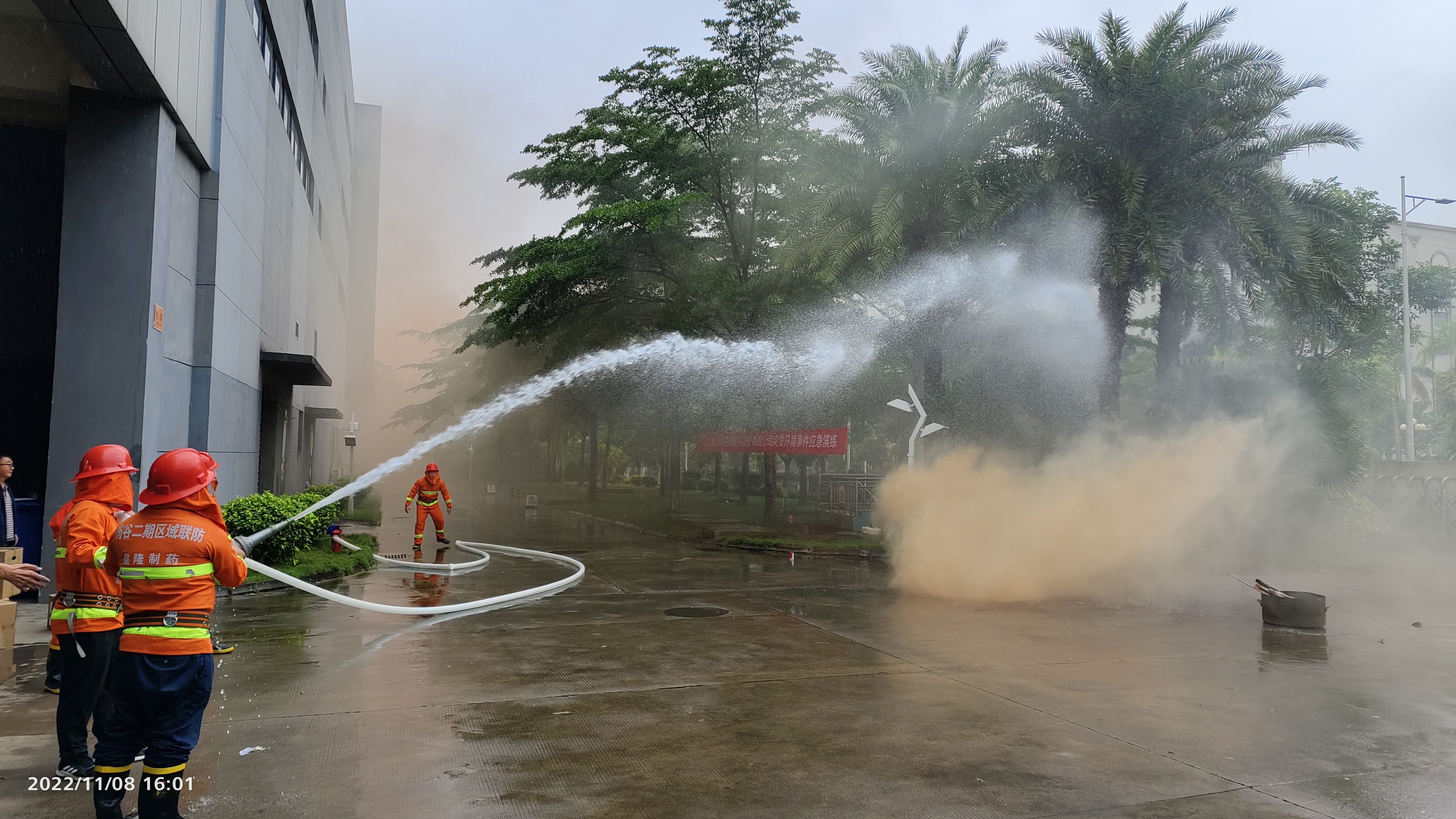 根據(jù)議程安排,全體與會人員來到戶外還進(jìn)行了2022年度安全消防及突發(fā)環(huán)境事件應(yīng)急演練。本次演練腳本共有三個模擬場景,分別是防恐防暴演練、突發(fā)環(huán)境事件演練、消防安全演練。