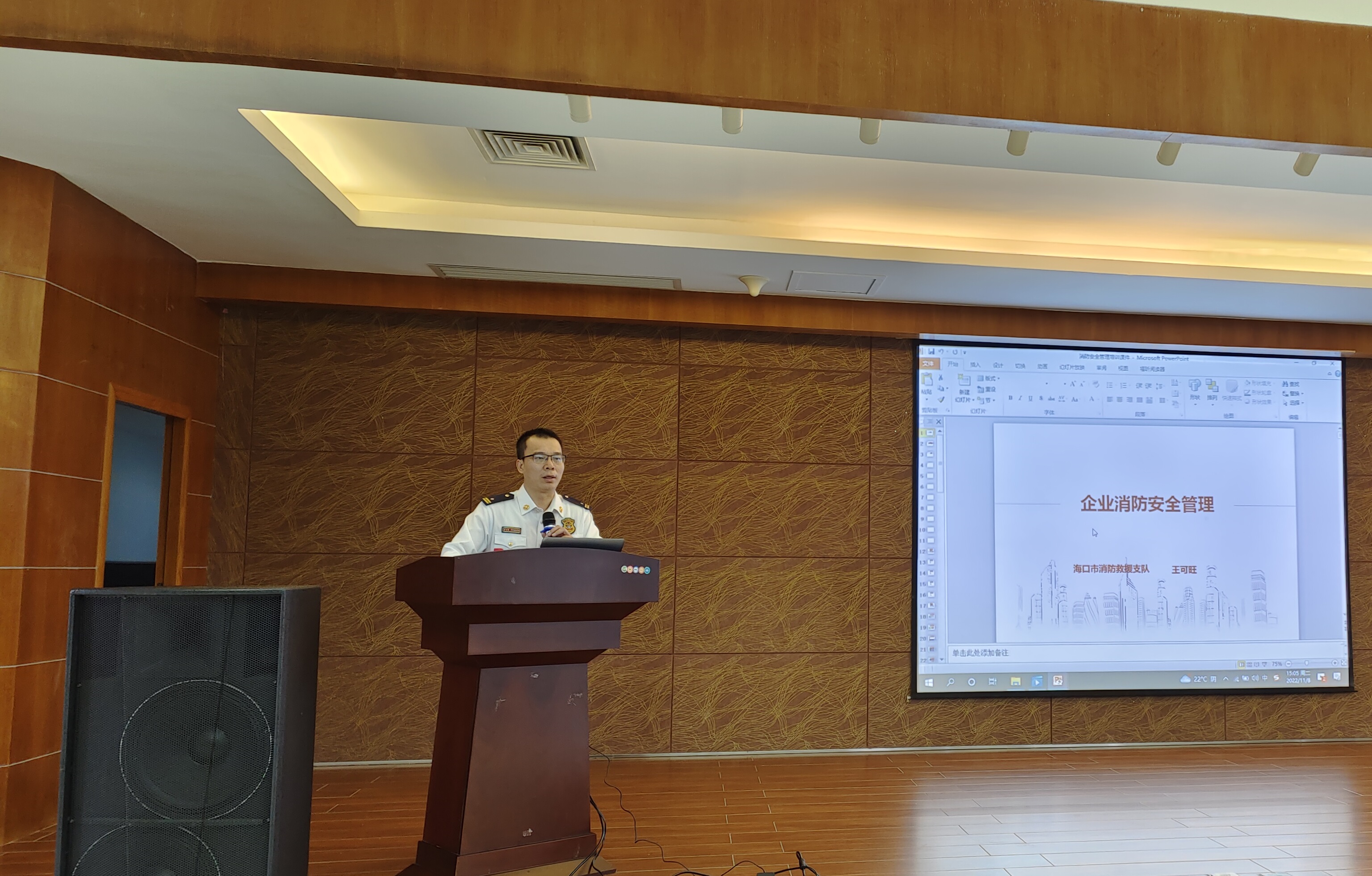 王參謀主要從火災(zāi)防控存在的風(fēng)險、單位消防安全管理常見問題、單位消防安全管理重點等三個方面進(jìn)行了通俗易懂、深入淺出的講解,加深了參訓(xùn)人員對安全消防理論的理解,提高了安全意識,增強(qiáng)了大家的應(yīng)急技能。