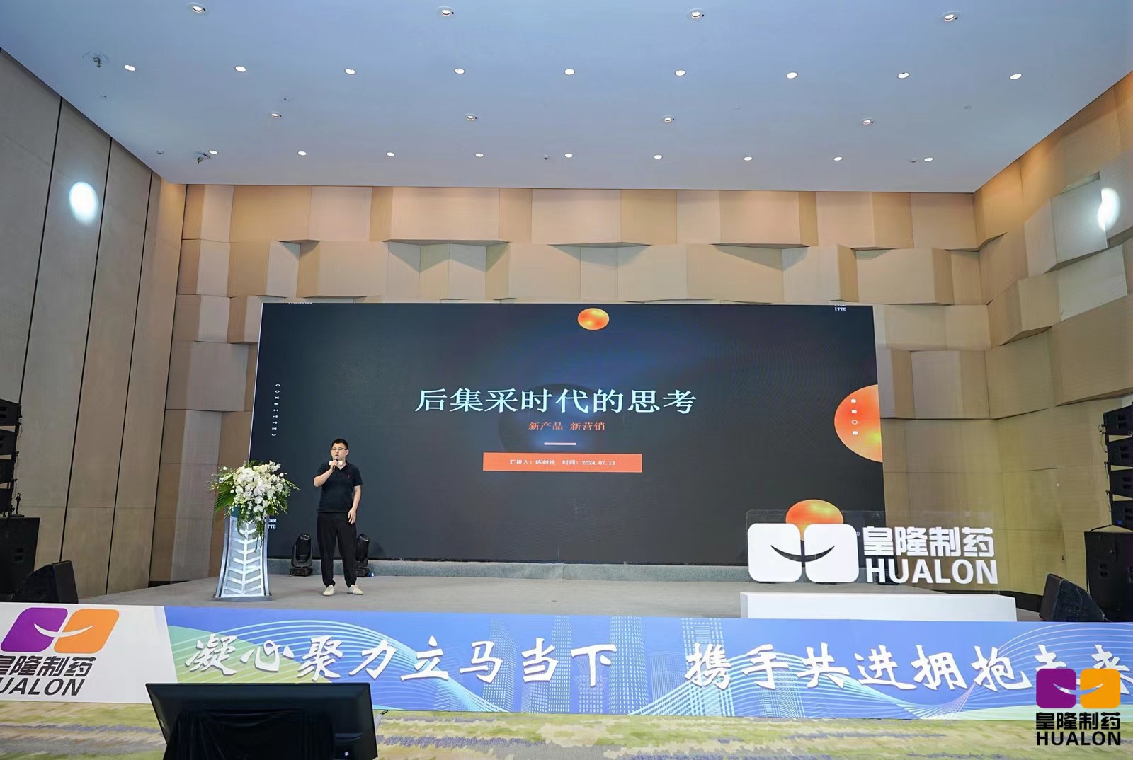 7月13日上午,公司組織全體客戶和省區(qū)經(jīng)理召開產(chǎn)品推介及銷售政策解讀會議,皇隆制藥董事長陳益智、副總經(jīng)理陳峙托、產(chǎn)品經(jīng)理魏小杰分別做主題報告,他們分別就公司產(chǎn)品的優(yōu)勢特點、集采產(chǎn)品的運營及實操、產(chǎn)品政策及市場前景深入剖析,為客戶展現(xiàn)了清晰的合作發(fā)展藍圖。會議由皇隆制藥總經(jīng)理助理方海霞主持。