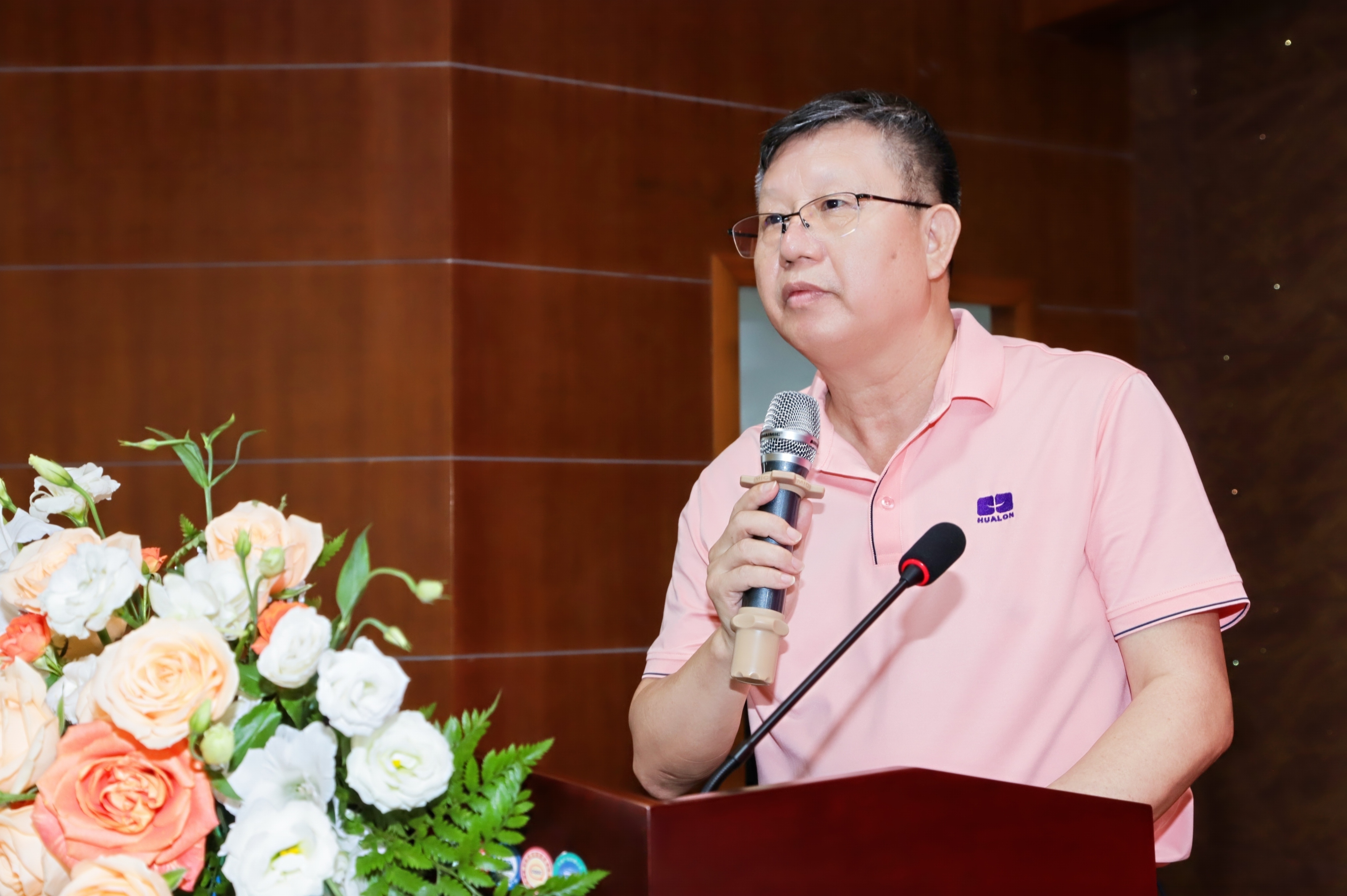 海南皇隆制藥股份有限公司董事長陳益智發(fā)表致辭。他向遠(yuǎn)道而來的中國藥科大學(xué)的學(xué)院領(lǐng)導(dǎo)表達(dá)衷心感謝,向完成“醫(yī)藥管理高級(jí)研修班”學(xué)業(yè)的學(xué)員表示熱烈的祝賀。他表示,2017年,皇隆制藥攜手中國藥科大學(xué)共同開設(shè)的“醫(yī)藥管理高級(jí)研修班”,旨在培養(yǎng)與時(shí)俱進(jìn)符合現(xiàn)代醫(yī)藥產(chǎn)業(yè)發(fā)展需要的優(yōu)秀人才。盡管在學(xué)習(xí)期間遭遇了疫情的嚴(yán)峻挑戰(zhàn)和各種考驗(yàn),但大家學(xué)習(xí)的步伐并未停止,因此才有了今天大家在皇隆制藥歡聚的時(shí)刻,一起共慶“醫(yī)藥管理高級(jí)研修班”圓滿結(jié)業(yè),一起見證“專業(yè)學(xué)位研究生院級(jí)實(shí)踐基地”揭牌?;事≈扑?ldquo;和誠共生、同享未來”的核心理念與中國藥大“精業(yè)濟(jì)群”的校訓(xùn)文化精神相同、價(jià)值觀念契合,“專業(yè)學(xué)位研究生院級(jí)實(shí)踐基地”,是校企雙方共同打造的專業(yè)平臺(tái),是為了讓更多的學(xué)員在這個(gè)平臺(tái)上學(xué)有所成、學(xué)以致用,為醫(yī)藥行業(yè)、為人類的健康事業(yè)做出更大的貢獻(xiàn)。