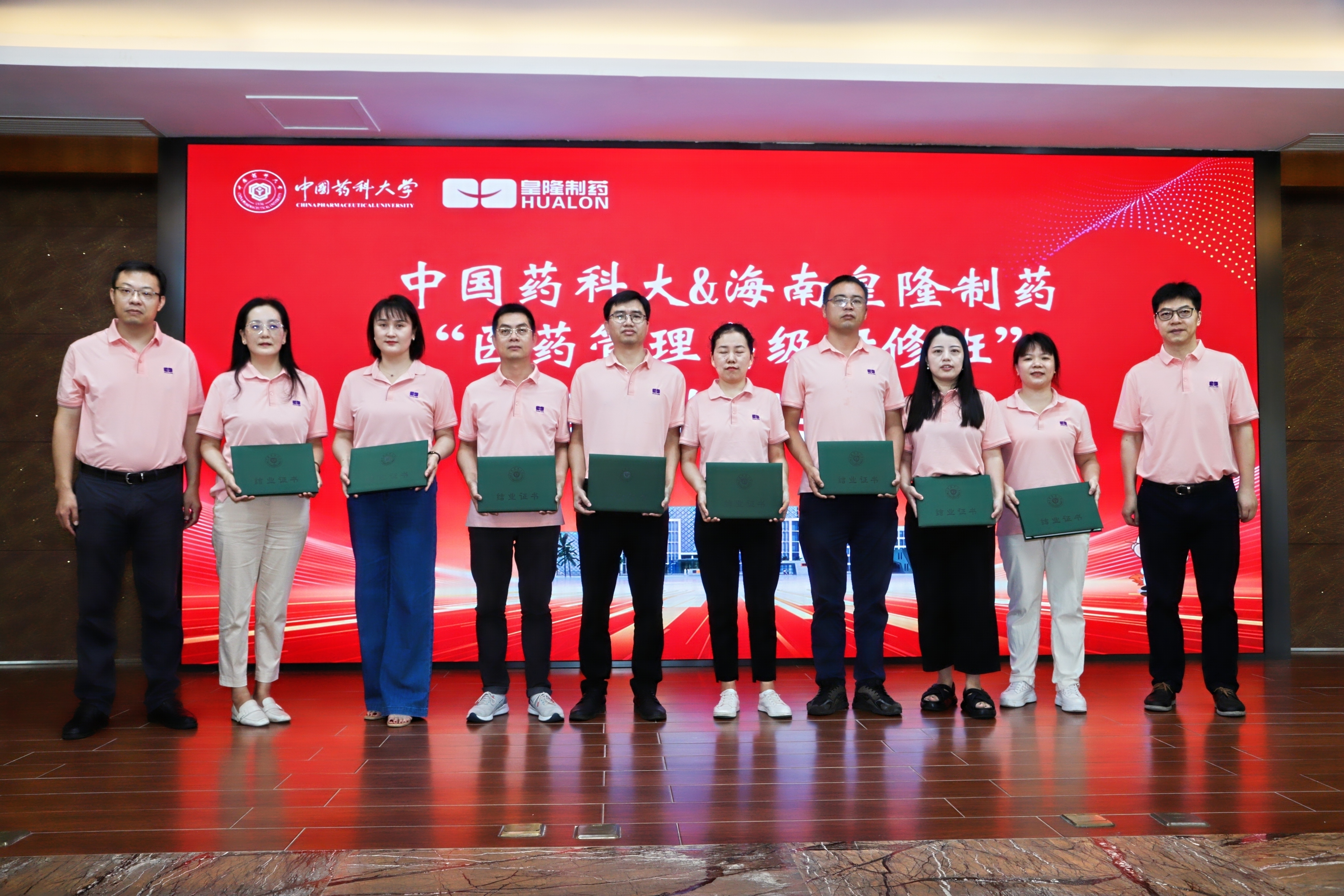 7月23日上午,中國藥科大學(xué)“專業(yè)學(xué)位研究生院級(jí)實(shí)踐基地”揭牌儀式暨中國藥科大學(xué)&海南皇隆制藥“醫(yī)藥管理高級(jí)研修班”結(jié)業(yè)典禮在海南皇隆制藥股份有限公司成功舉行。海口國家高新技術(shù)產(chǎn)業(yè)開發(fā)區(qū)工委副書記、管委會(huì)主任李杉、中國藥科大學(xué)研究生院副院長李飛、中國藥科大學(xué)國際醫(yī)藥商學(xué)會(huì)副院長徐偉、海南皇隆制藥股份有限公司董事長陳益智、公司管理層以及54名學(xué)員共同參加了本次儀式。